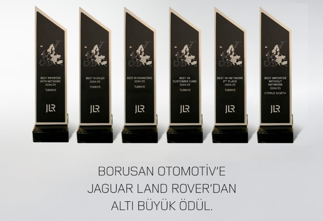 Borusan Otomotiv’in Türkiye distribütörlüğünü üstlendiği Jaguar Land Rover (JLR), Avrupa distribütörleri 2024 yılı iş sonuçları ödüllerini açıkladı. Borusan Otomotiv, Avrupa Bölgesi’nde 3. kez üst üste En İyi Distribütör (Best Importer with Network) unvanının sahibi oldu. 2024 yılındaki başarılı çalışmaları sonucunda ise En İyi Satış (Best in Sales), En İyi Pazarlama (Best in Marketing), En İyi Satış Sonrası ve Müşteri İlişkileri (Best in Customer Care) ödüllerine layık görülürken, Yetkili Satıcı ve Yetkili Servis Ağı Yönetimi’nde de ikincilik ödülünü kazandı. Ayrıca, Borusan Oto Kuzey Kıbrıs Temsilciliği ise tarihinde ilk kez En İyi Distribütör (Best Importer without Network) ödülünü alarak önemli bir başarı elde etti.